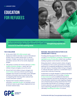 Through strategic partnerships with global and national stakeholders working in humanitarian support and development, GPE supports effective education delivery during conflicts and crises by financing rapid responses, supporting multiyear planning so that national education systems become more resilient to future crises and inclusive of refugees.