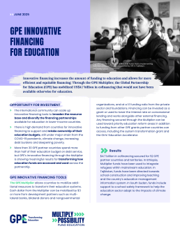 The GPE Multiplier is an innovative finance instrument that catalyzes more and better investments in education. It works alongside other sources of external funding and can be invested as a grant or used to lower the interest rate on concessional lending from multilateral development banks or bilateral donors. It can also work alongside other, non-traditional sources of development finance, including private capital.