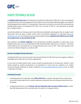 Consultez les documents politiques, guides, rapports et fiches d’information du GPE, des pays partenaires et tout autre document lié à nos financements.