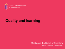 A 2012 presentation for the Board meetings in Berlin, Germany regarding the implementation of quality of learning in the GPE Strategy, focusing on early grade reading and math.