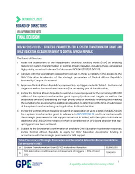 The Board of Directors invites the Central African Republic to submit a revised proposal a system transformation grant and Girls' Education Accelerator grant.