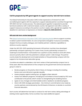 GPE invites expressions of interest from GPE-accredited grant agents with the capacity to support selected partner countries through their GPE 2025 mid-term review process.